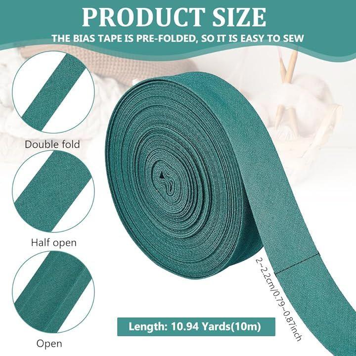 [サイズ詳細]--両折バイアステープ1巻、全長約10m、幅約20~22mm。