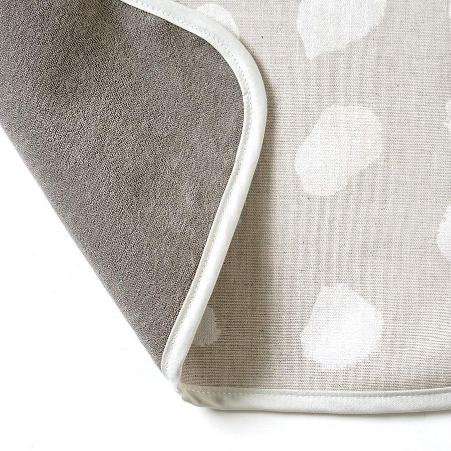 1日に何度も行う赤ちゃんのおむつ替えの時に、外出先でもさっと引くだけで、周りが汚れることを防ぐおむつ替えマット。表面は、水分や汚れをはじく、撥水加工生地、裏面は、肌触りのよいパイル地を使用。4つ折りにして丸めることで、コンパクトな筒状になるので、気軽に持ち歩くことができます。おそろいの柄でワンタッチおむつポーチや母子手帳ケース、マグポーチもございます。プラスワンの出産ギフトにもおすすめです。ピエールとはフランス語で石の意味。石ころがならんでいる姿を愛おしく描い