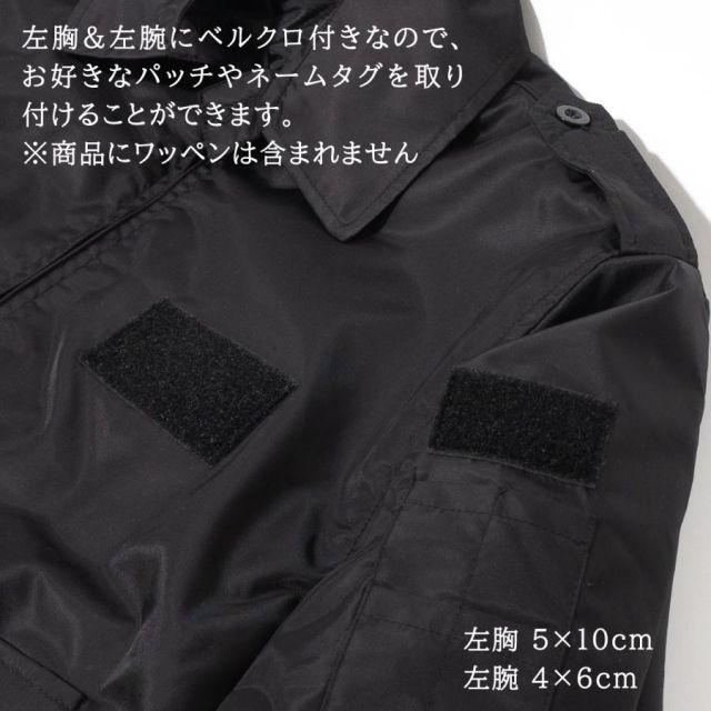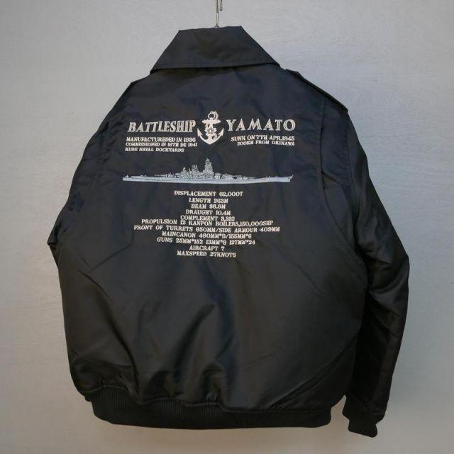 商品名:【ポイント10倍】 フライトジャケット(戦艦大和・刺繍入り)【戦艦大和グッズ】防寒着 ミリタリー アウトドア カジュアル ジャケット メンズ海上自衛隊 簡易ジャンパーをベースに背中に戦艦大和を刺繍。サイズは大き目です。取り外し可能な【襟ボア】付きです。左胸&左腕にベルクロ付きなので、お好きなパッチやネームタグを取り付けることができます。左胸:5x10cm・左腕:4x6cm※商品にワッペンは含まれません。カラー:ブラックサイズ:S/M/L/LL/3L/4L<サイズ表(仕上がり寸法)・cm>4L:胸囲145・肩幅58・着丈75・袖丈713L:胸囲140・肩幅56・着丈73・袖丈67LL:胸囲135・肩幅54・着丈71・袖丈65L:胸囲130・肩幅52・着丈69・袖丈63M:胸囲125・肩幅50・着丈67・袖丈61S:胸囲120・肩幅48・着丈65・袖丈59SS:胸囲115・肩幅46・着丈63・袖丈57<素材>表:ナイロン100%中綿:ポリエステル100%