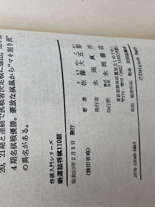 商品名:新選詰将棋110題 実戦に強くなる精選問題 佐藤大五郎 永岡書店