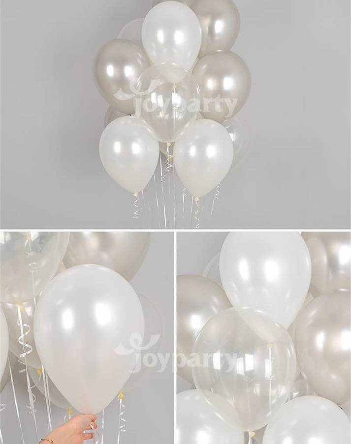 12 inch round balloons 30cm balloons pearl white + crystal clear + silver 30pcs