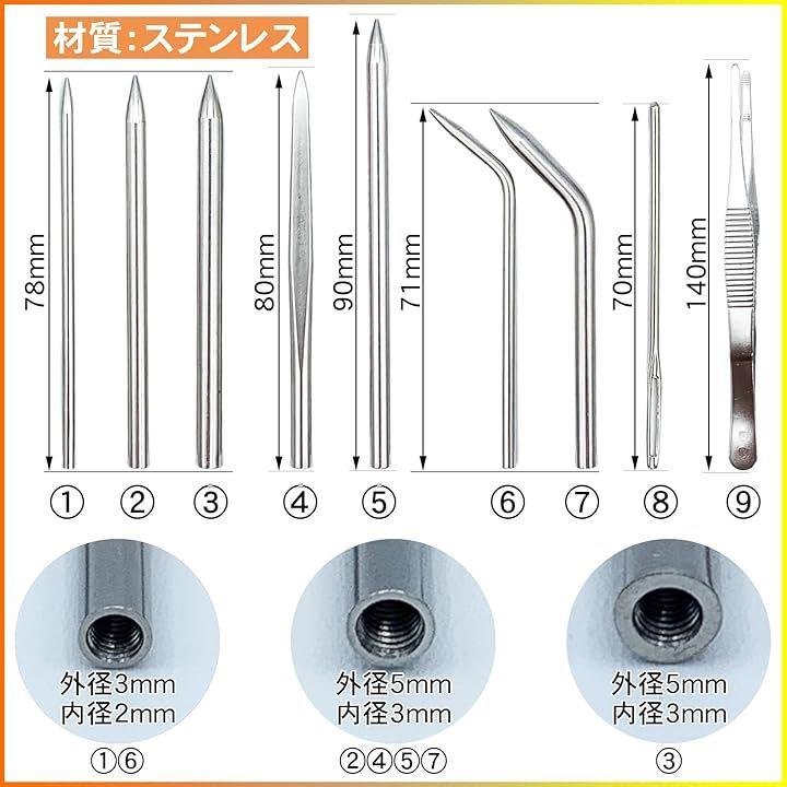 さまざまなサイズと形状のニードルが含まれており、プロジェクトの要件に合わせて選ぶことができます。