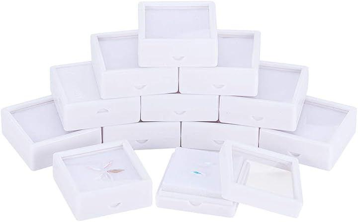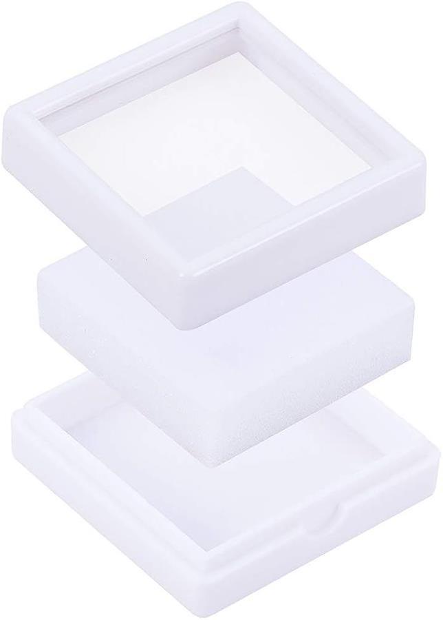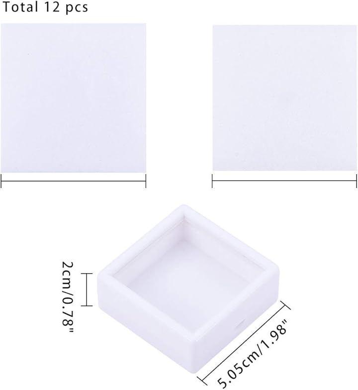 パッケージ:12個セットアクリルジュエリーボックス;形:正方形;サイズ:5.05x5.05x2cm;色は白色