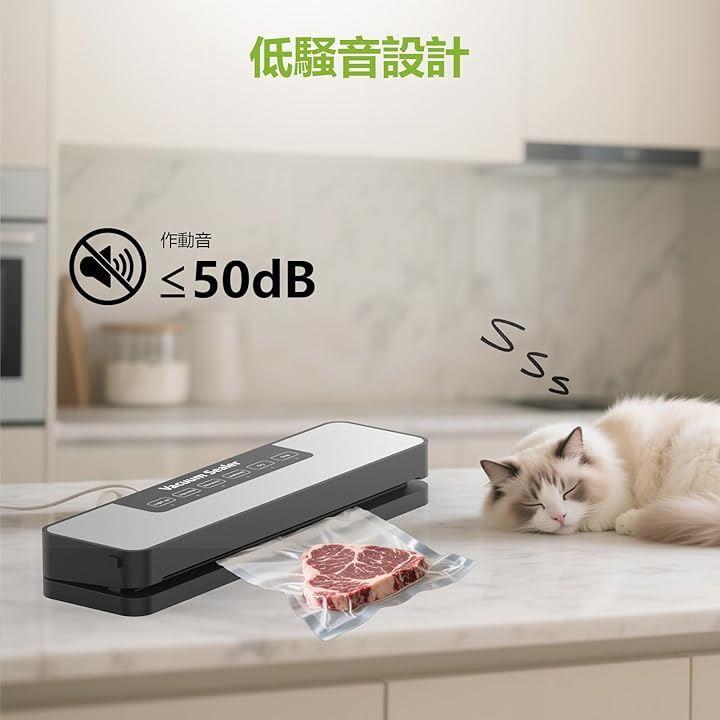 「収納に便利&コンパクト」このフードシーラーはコンパクトなデザインと軽量モデルで、持ち運びに便利です、製品サイズ:350x 110x 50mm、重量はわずか680g、コンパクトかつ携帯に便利なデザインで、静音性能も65dB以下の低騒音を実現します
