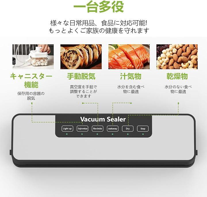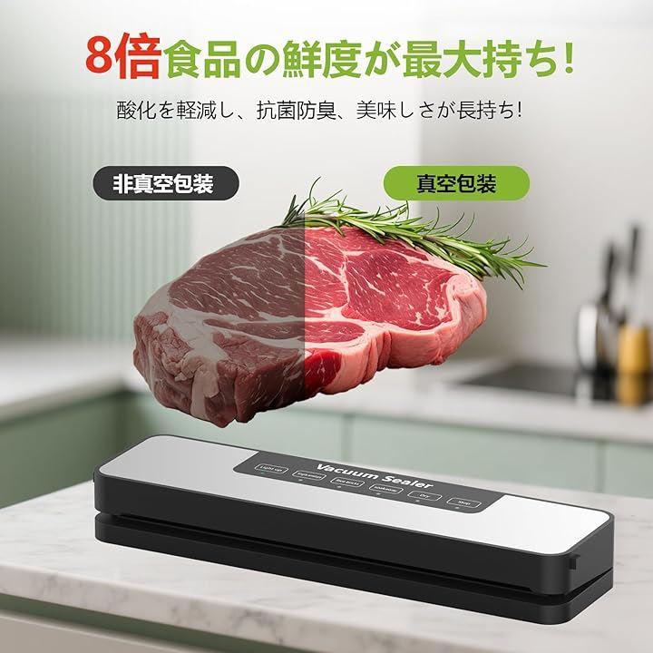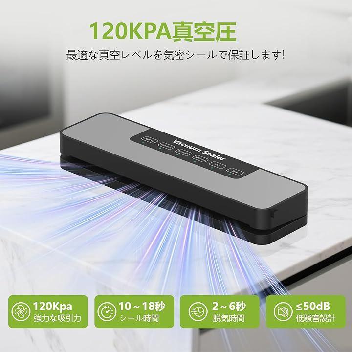 120kPa吸収力 全自動真空パック機 30cm延長圧着口 簡単操作 軽量 低騒音 家庭用業務用 食品保存 密封保存 冷凍 冷蔵 専用保存袋10枚付き