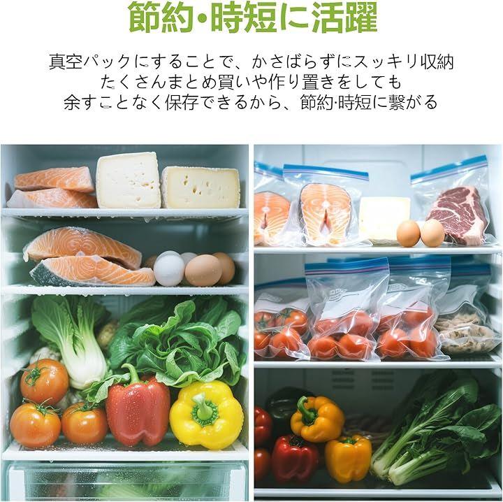 肉や魚、餃子、ハンバーグなどは「脱気して密封」で鮮度を保ち、葉物野菜は「脱気途中で密封」で柔らかさを維持。