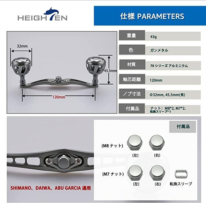 ・「サイズ」ノブ直径32mm、ハンドル軸心距離120mm 「総重」43g「素材」70シリーズ航空アルミ。