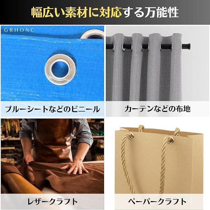 高品質な鉄製ハトメ150組(ゴールド50組・シルバー100組)入りで、大量の作業にも対応可能。