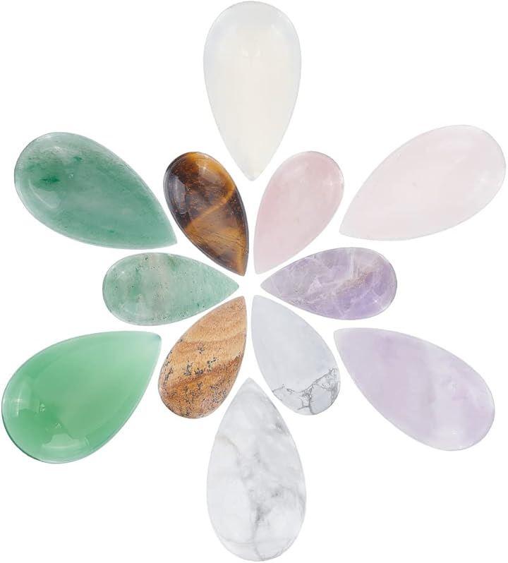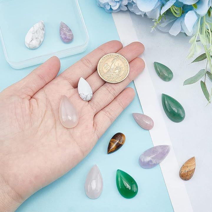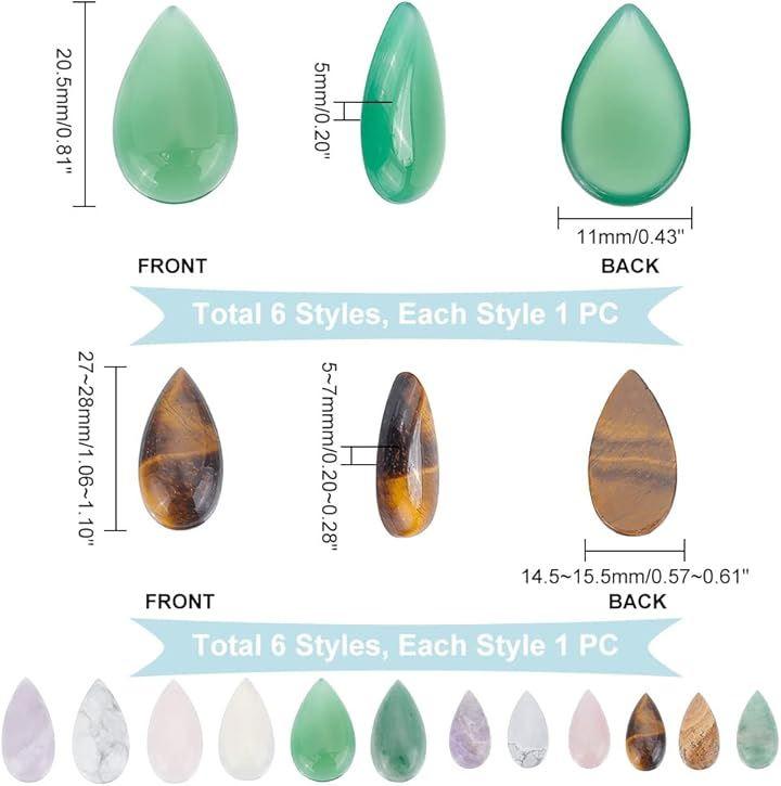 仕様: 数量:12個/セット 素材:石 色:多種 サイズ: ティアドロップ形 天然石カボション:およそ20.5 x 11 x 5mm、スタイル6種、各スタイル1個、6個入り ティアドロップ形 天然石カボション:およそ27~28 x 14.5~15.5 x 5~7mm、スタイル6種、各スタイル1個、6個入り