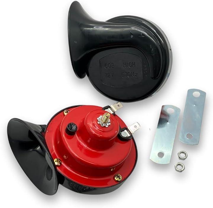 12V Electronic Horn, European Sound, High and Low Tones Set, 510Hz/410Hz, 115db, Loud, Universal for Cars and Motorcycles, Red