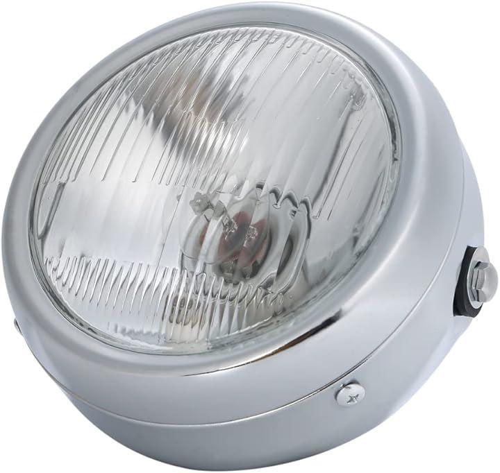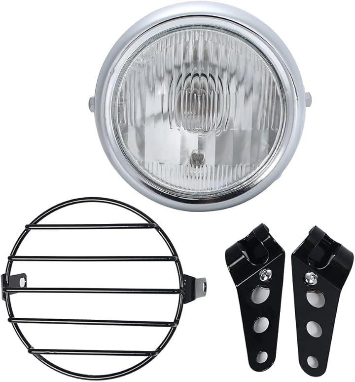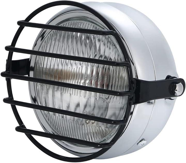 12V Vintage Bates Light Headlight with Bracket and Bobber Guard, Off-Road, 5.5-inch H4 Bulb, Compatible with TW225, TW250, Serow 225, Serow 250, Tricker, DT250, XT250, etc., Universal, Aftermarket Part