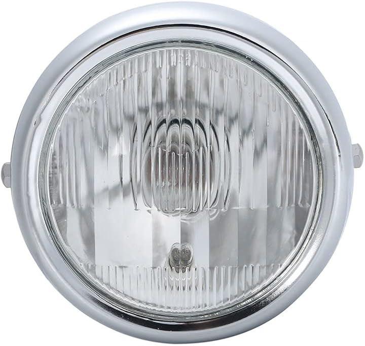 サイズ(約):直径165mmx幅175mmx奥行140mm 電圧:12V 35W 材質:金属製(本体)、ガラス(レンズ) 重量(約):1.1kg セット内容:ヘッドライト、ライトガード、ブラケットの3点セット *ブラケットはフロントフォーク径φ30~φ33に取り付け可能です。