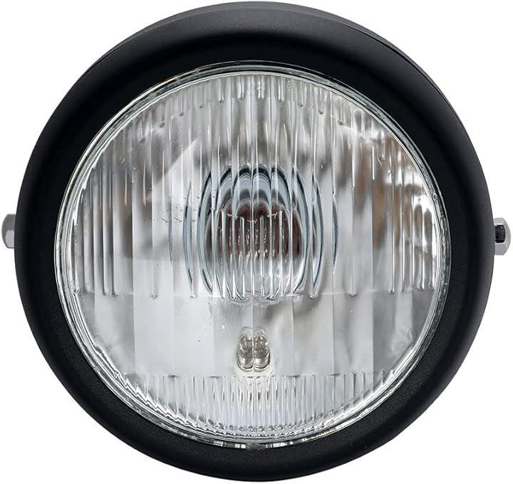サイズ(約):直径165mmx幅175mmx奥行140mm 電圧:12V 35W 材質:金属製(本体)、ガラス(レンズ) 重量(約):1.1kg セット内容:ヘッドライト、ライトガード、ブラケットの3点セット *ブラケットはフロントフォーク径φ30~φ33に取り付け可能です。