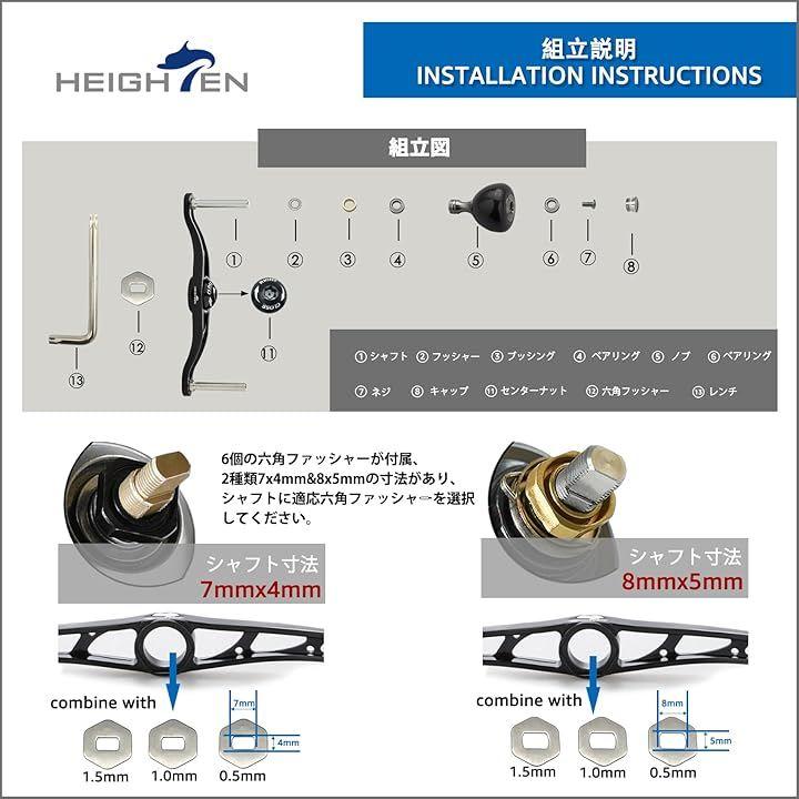 「リールハンドル付属」4x7mmセンターナット2個、5x8mmセンターナット2個、DAIWA STEEZセンターナット1個、6角ワッシャー 6個(取付部4x7mm、5x8mm)、レンチ1個。