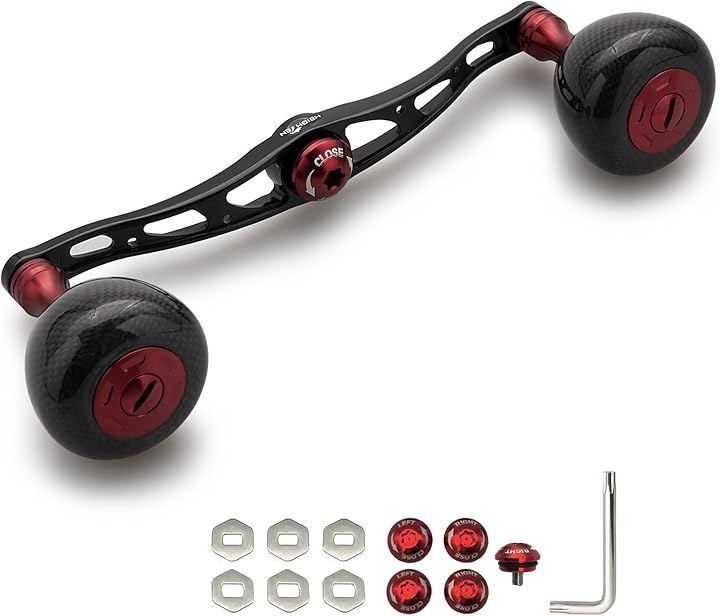 「サイズ」ハンドル軸心距離130mm、ノブ直径36mm 「総重」44.5g「素材」70航空アルミ、東レ1.0Kカーボン。