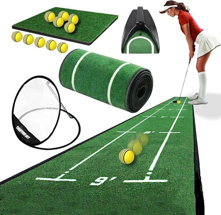 「パターマット&アプローチ練習14点セット」自宅で手軽にパターとアプローチの腕を磨ける14点フルセット。いつでも好きな時に練習可能なので、パッティングとアプローチスキルが向上。グリーン周りのスコアを改善し、より良いラウンドを実現しましょう。