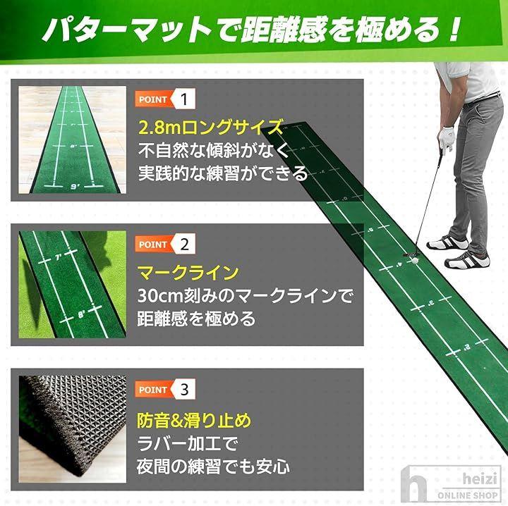 「距離感」長さ2.8mのパターマットは、30cmごとのマークで正確な距離感を把握できるので、実践的な練習ができます。