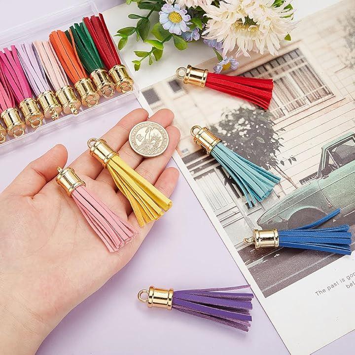 幅広い用途:フェイクレザータッセルは、イヤリング、ブレスレット、ネックレス、ブックマーク、招待状、キーホルダー、チャーム、招待状、枕、携帯電話の装飾、バッグチェーンの装飾などに使用することができます。