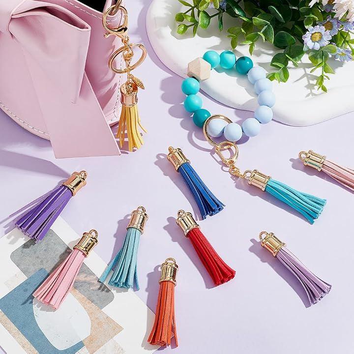 高品質の材料:カラフルなタッセルは、プラスチック製のキャップとフェイクレザーで作られており、良い品質、簡単にフェードまたは摩耗しない、軽量、洗濯可能で、長い間使えるように頑丈です。