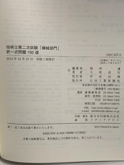 150 Multiple Choice Questions for the Secondary Engineer Examination "Mechanical Section" Nikkan Kogyo Shimbun, Yoshitomo Ohara