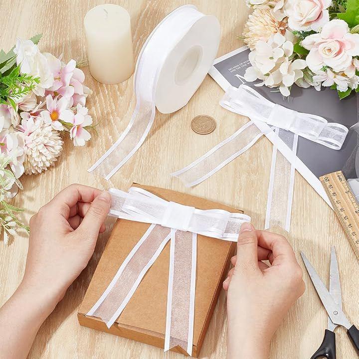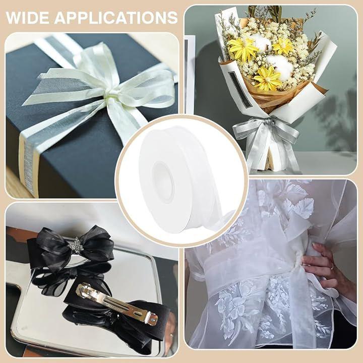 幅広い用途:サテンエッジの透明リボンは、ギフトラッピング、パーティーの装飾、結婚式の装飾、クリスマスツリーの飾り、蝶結び、リース、花柄、クラフトリボン、コサージュなどに最適で、工芸品や DIY プロジェクトの装飾に最適です。