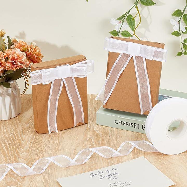 パッケージとサイズ:長さ約18.3m/20ヤード、幅約25mm/1インチのホワイトエッジリボンのロールをお届けします。