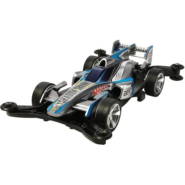 タミヤ ミニ四駆REVシリーズ No.04 シャドウシャーク (ARシャーシ) 18704 レーシングマシンの最高峰、フォーミュラカーのデザインを徹底的に採り入れたニューマシンが、ミニ四駆REVシリーズ第四弾のシャドウシャーク。特徴的なハイノーズとシャークフィンはどちらもトレンドとなった空力処理。サイドポンツーンやインダクションポッドのエアインテークも開口し、ノーズ下にもエアインテークを用意するなど、ARシャーシと合わせていっそう空気を効率よく活用したスタイル。新たな走りの世界を広げるマシン。