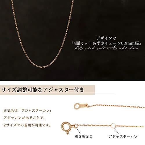 チェーン長さ:金具込み全長50cm ※アジャスターカンにより47cmでも着用可チェーン種類:カットあずきチェーン 幅0.9mmプレート(板カン) 最大幅約3.0mm素材:K18ピンクゴールド(18金PG)、生産国:日本無料ギフトラッピング(BOXにリボン掛け+手提げ袋)の包装にてお届け
