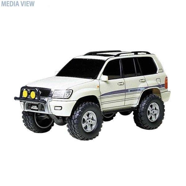 タミヤ 19021 1/32 コミカルミニ四駆シリーズ ランドクルーザー100 プラモデル パワフルな走りと実感の高いボディが楽しいミニ四輪駆動車のプラスチックモデル組み立てキット。ボディは1998年1月にフルモデルチェンジされたランドクルーザー100。大型のヘッドライトやフロントグリル、大きく張り出したフェンダーが力強い、「キング・オブ・4WD」と呼ばれるスタイルをリアルに再現。シャーシはモーターパワーをプロペラシャフトとウォームギヤで伝える4WD。無理な力からギヤを守るセーフティ機構を備えています。組み立ては接着剤不要のはめ込み式、配線なしのモーターライズで手軽に完成。【基本スペック】●モーター付き【別にお求めいただくもの】●単3形電池2本全長:159×全幅:72mm(1/32スケール)ミニ四駆※組み立て・塗装の必要なプラモデルです。完成品ではございませんのでご注意ください。写真は組立、塗装仕上げをした状態です。
