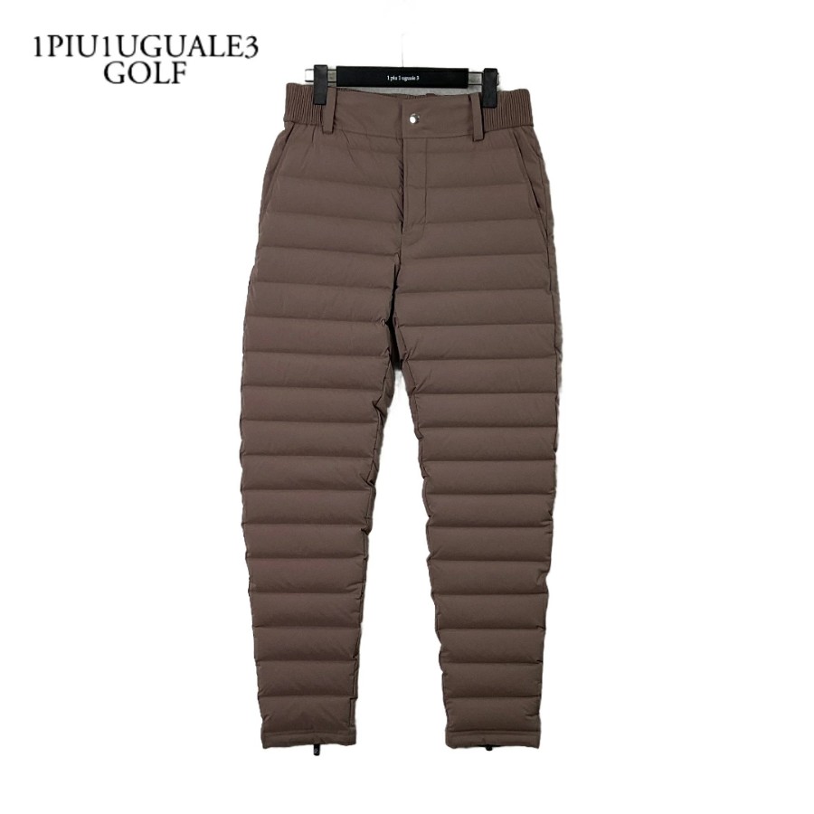 【紹介文】:着膨れしないシャープなシルエットのダウンパンツ。 バックの裾部分にはジップファスナーを付属。 クイックな着脱のしやすさがポイントです。 1PIU1UGUALE3 GOLF(ウノピゥウノウグァーレトレ ゴルフ) 日本から世界に向けて発信するブランドとして世界中の上質な素材を贅沢に使用し、 ラグジュアリーな商品をリリースし続ける1PIU1UGUALE3。 ハイエンドラグジュアリーブランドが提案する、高いデザイン性とスポーツの機能美を併せ持ち 上質を知る全てのプレイヤーの為のウェアとしてリリースいたします。 革新的なハイテク素材を採用し、ただ派手な物ではなくテーラーリングを得意とする 同ブランドならではの立体パターンにより、洗練された高いデザイン性と 最高のフィッティングを兼ね備え着る者全てに高揚感と優越感をもたらします。