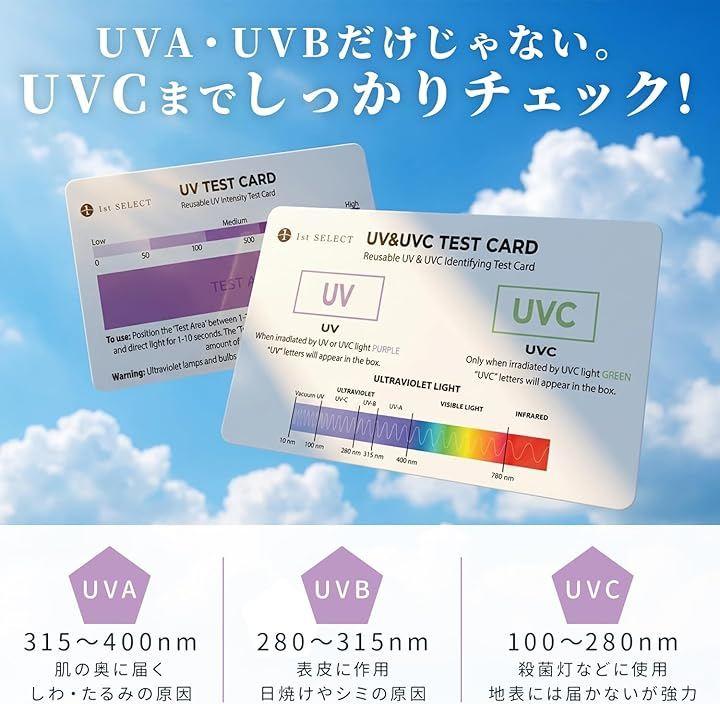 「すべての種類の紫外線に対応」UVA、UVB、UVCの3種類の紫外線を全てチェックできます。