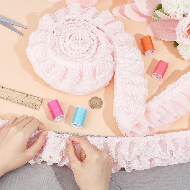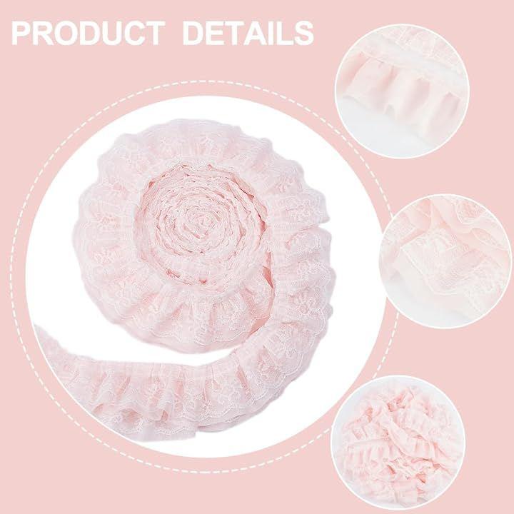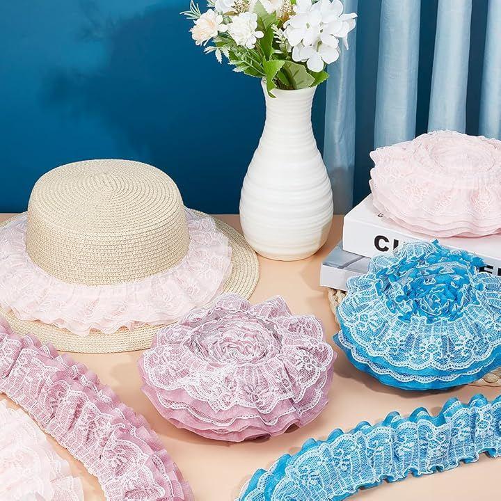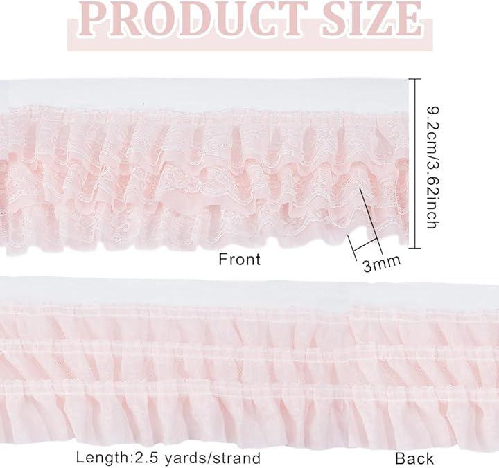 2.3m/2.5 Yards 3-Layer Ruffle Lace Pleated Trim, 92mm Wide (3-5/8 Inch), Chiffon Floral Gathered Ribbon for Wedding Appliques, Sewing, Handmade DIY Decorations