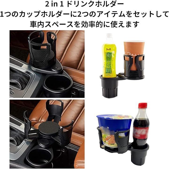 2in1デザインにより、1つのホルダーで2つの飲み物を同時に楽しむことができ、360度回転することでお好みの位置に調整可能です。
