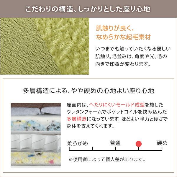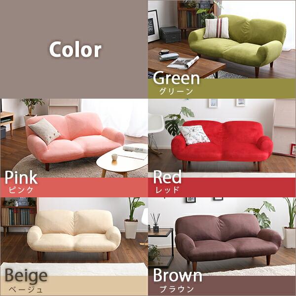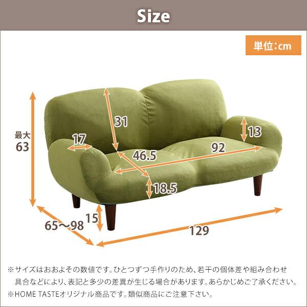 キュートなデザインの日本製2人掛けソファ!14段階のリクライニングで背もたれを自分好みの角度に!落ち着いた雰囲気の木目調樹脂脚を取外せばローソファに♪肌触りがよく、なめらかな起毛素材5カラーからお選びいただけます!