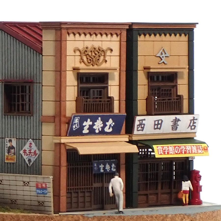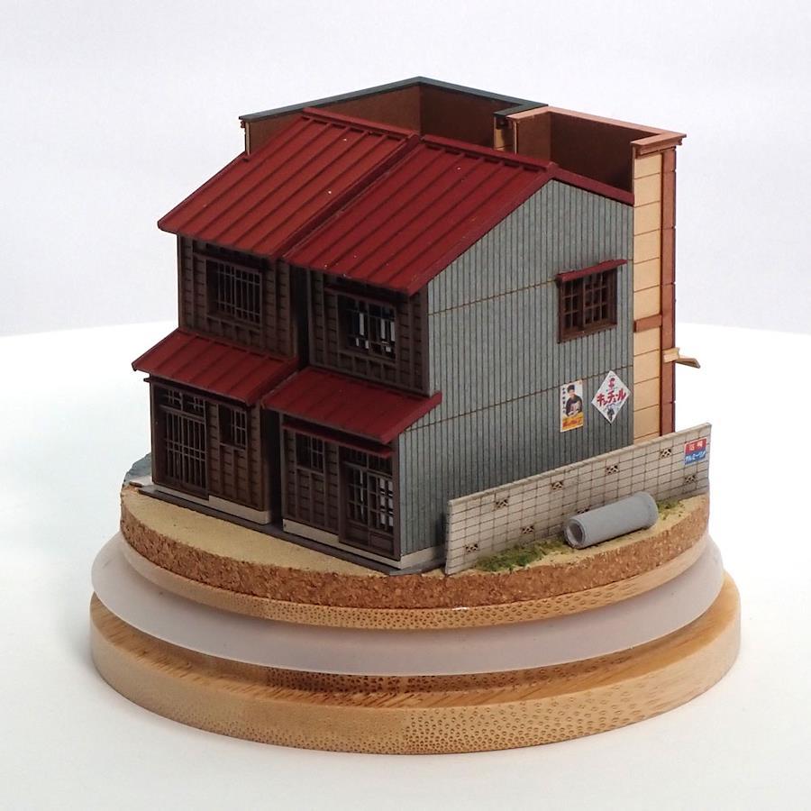 Baioudou's Kit,Kanban Building B,Kanban Building Care used for this miniscule diorama of a Showa-era town.