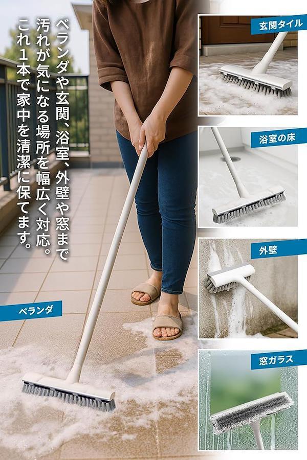 お風呂掃除をはじめ玄関やベランダ、屋外掃除まで幅広く使える万能デッキブラシです。
