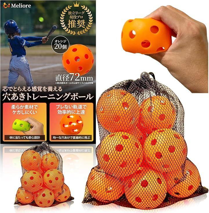 「実践感覚で楽しく上達。」公式の野球ボールと同じ直径72mmで設計された穴あきボールです。