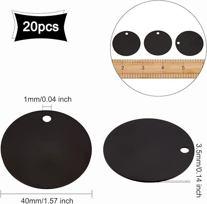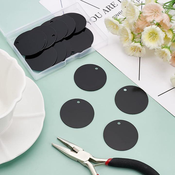 広い用途:旅行時の荷物タグ、バッグ用ネームタグ、旅行用品タグなどを作れます、ブランク札でお名前/住所/電話番号/メッセージなどを印刻します;ジュエリーなど工芸品などを作るときに、好きなバターンを印刻して、ペンダントなどを作ります;可愛い丸いアルミ札の上で、好きな素材、フォント、刻印パターンを印刻できます。