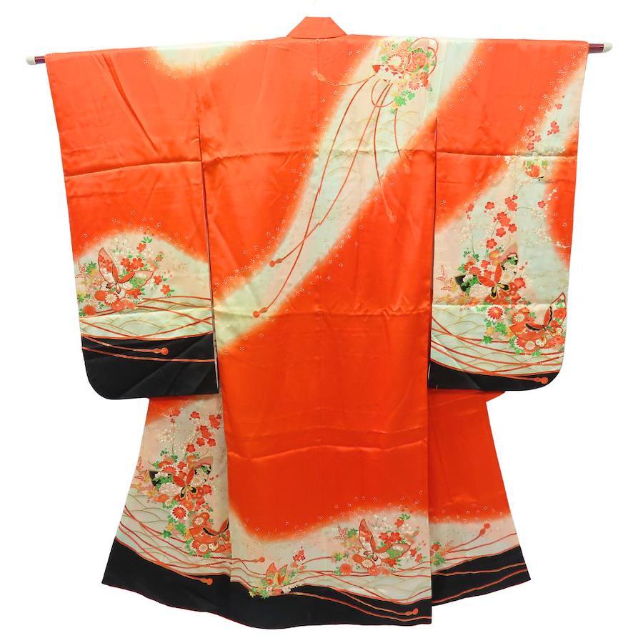 | サイズ | サイズ 袖丈:約 74.5cm 裄丈:約 57cm 肩身丈:約133.5cm 前幅:約18.5cm 後幅:約25.5cm 図柄:蝶 |