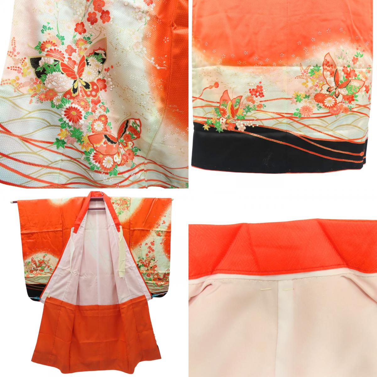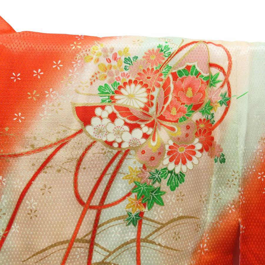 | 品名 | 【中古】 子供着物 祝い着 合成繊維 朱色 マルチカラー 女の子 七五三 7歳用 |