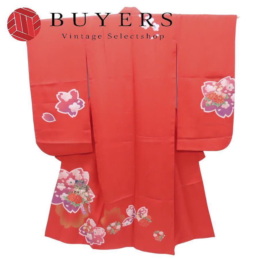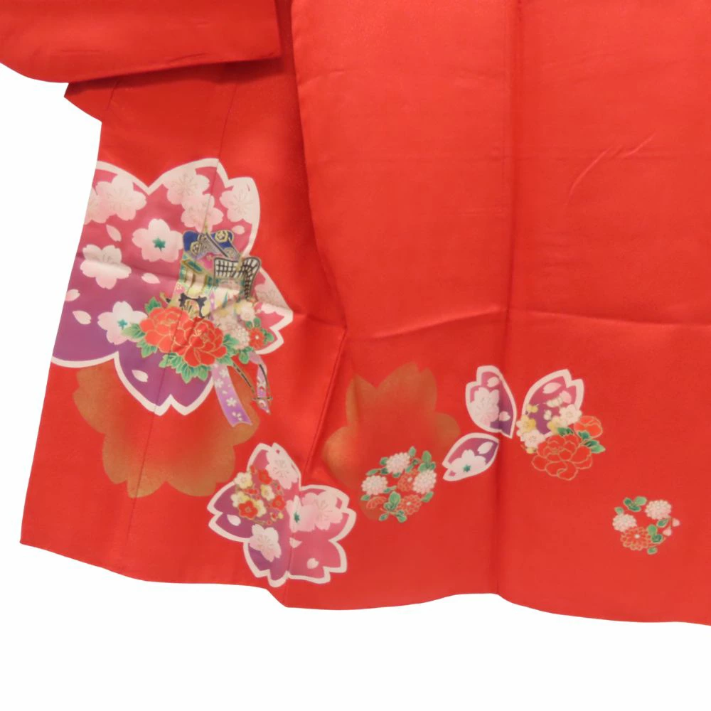| 品名 | 【中古】 子供着物 祝い着 合成繊維 レッド 7歳用 七五三 重ね襟つき |
