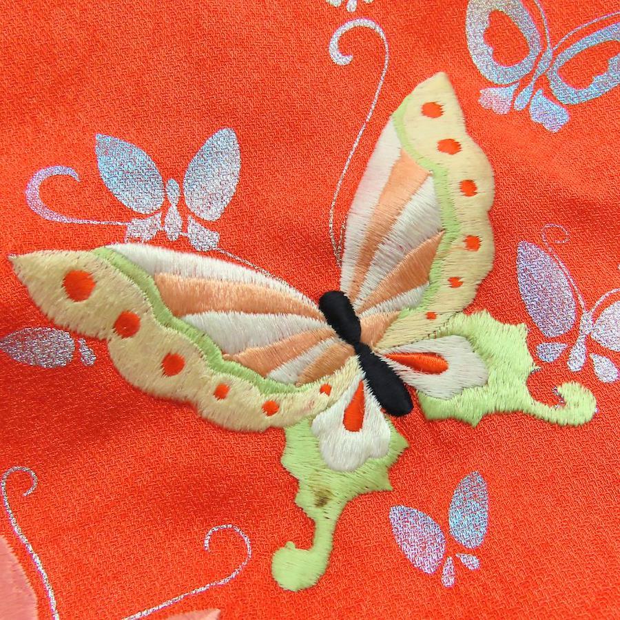 | 品名 | 【中古】 子供着物 七五三 正絹(金銀糸除く) ピンク系 朱色 女の子 7歳 刺繍 |