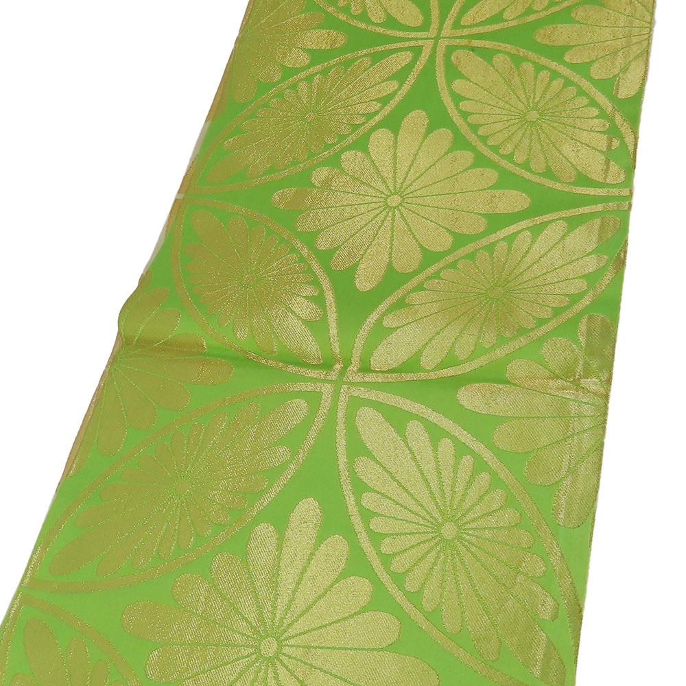 | サイズ | サイズ 全長:約 402cm 幅:約 26.5cm 帯の柄1:七宝花文 重量:約965g |