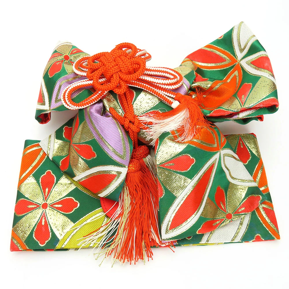 | 品名 | 【中古】 帯 和装小物 七五三用 ポリエステル 化繊 緑 金 朱 白 ゴールド金具 結び帯 飾り帯 付け帯 |