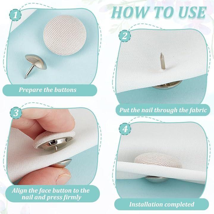 布を通してボタンの反対側の穴に釘を入れ、ボタンを押すだけで固定できます。