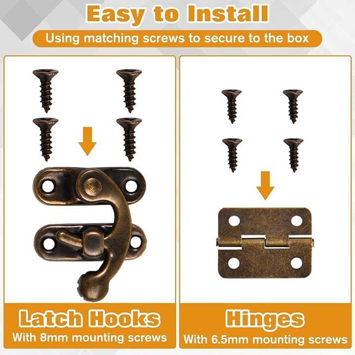 取り付けは簡単: ピンと蝶番は、付属のネジでボックスに固定することで簡単に取り付けることができます