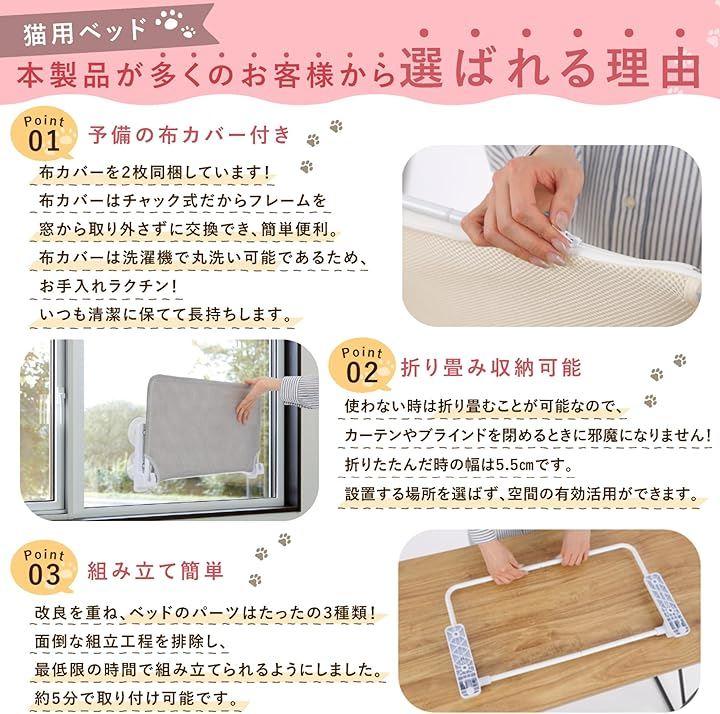 釘を打ったり接着剤を使用したり穴を開けたりする必要がなく、賃貸でも使いやすいペットベッドです。