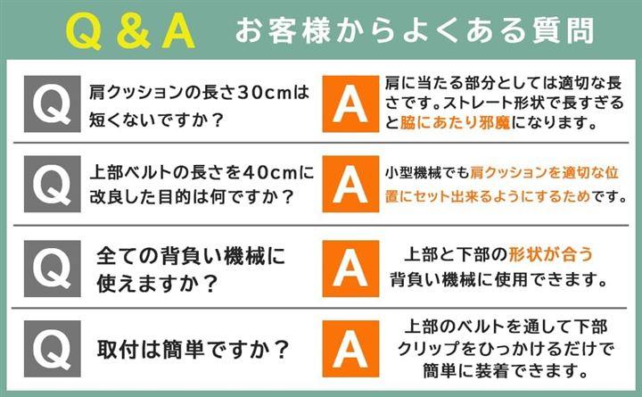 「商品詳細」 レギュラー肩クッションは、最大幅8cm、長さ30cm、厚さ1.3cmのストレートクッションを採用し、荷重の圧力を分散することで、痛みや疲労を軽減します。