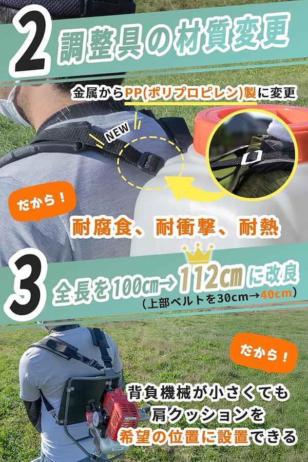 「適応背負い機械」 本製品は、背負い式エンジン草刈機、動力噴霧器、背負式噴霧器、背負動力噴霧機、除草剤散布機、背負い式肥料散布機、背負い式携帯型集塵機、背負い式草刈り機、背負い式電源などに対応しています。