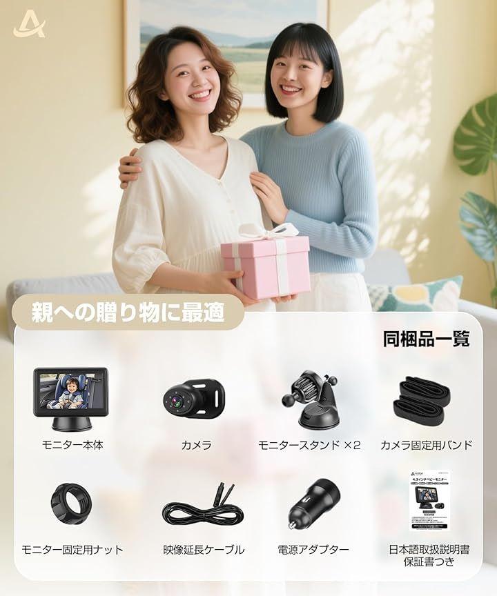 「マルチシーン対応:赤ちゃん・ペット・荷物も見守る」赤ちゃんや小さなお子様、ペット、さらには大切な荷物まで、車内のあらゆるシーンに対応する見守りモニターです。